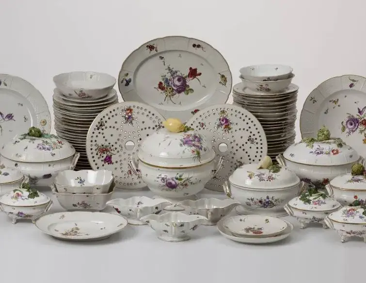 Gegenstände aus Porzellan waren seit dem 18. Jahrhundert begehrte Sammelobjekte, Dekoration fürstlicher Tafeln und repräsentative Geschenke. Prinzessin Maria von Teck (1867–1953) erhielt 1893 bei ihrer Hochzeit mit Herzog Georg von York, der 1910 als König Georg V. den britischen Thron bestieg, eine besondere Mitgift: ein 158-teiliges Speiseservice, das um 1770 vermutlich im Auftrag Herzog Carl Eugens von Württemberg gefertigt worden war.